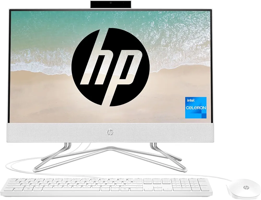 HP All-in-One PC Intel Celeron J4025 21.5 inch(54.6cm) FHD Anti-Glare Display (8GB RAM/512GB SSD/Windows 11/Intel UHD Graphics 600/Wired Keyboard and Mouse Combo/MS Office/Snow White), 22-dd2986in